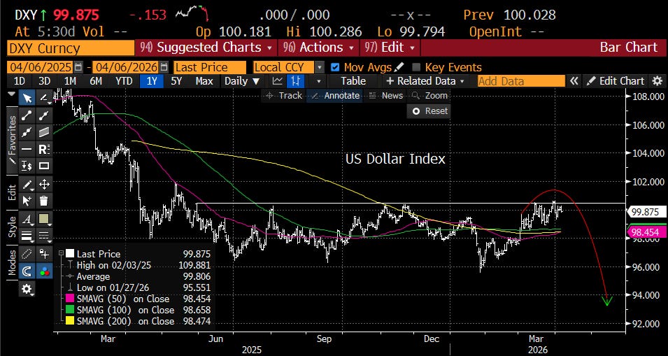 I updated the U.S. Dollar Index, U.S. 10yr yield, U.S. 10yr-2yr yield spread, WTI crude oil, NY copper, spot gold, spot silver, NYSE Arca Gold Miners Index, bitcoin, Strategy, S&P futures, NASDAQ 99 futures, and DOW futures charts below.