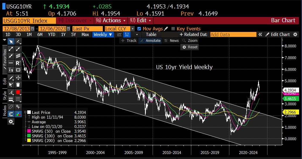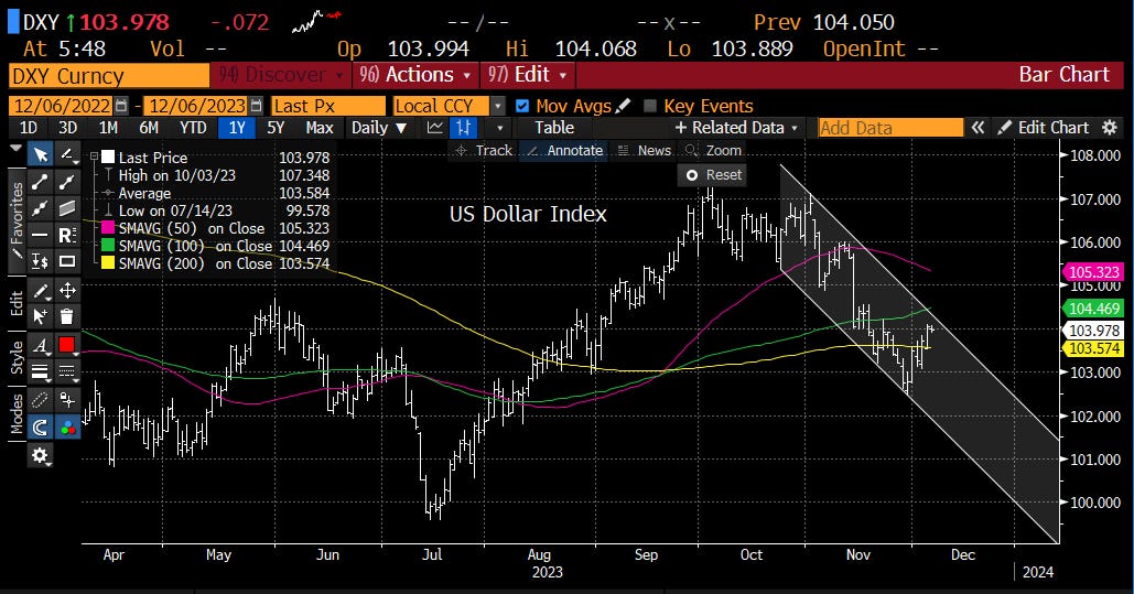 I updated the U.S. Dollar Index, U.S. 10yr yield, U.S. 10yr yield weekly, WTI crude oil, spot gold, bitcoin, S&P futures and NASDAQ 100 futures charts below.
