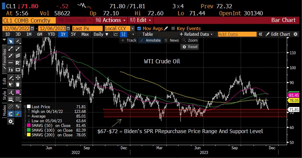 Putin is visiting the United Arab Emirates this morning and Saudi Arabia this afternoon. Last time Putin and MBS were laughing together it was about killing people. Today they are talking about oil prices and wars. There is nothing to joke about today. OPEC+ production cuts are not working, prices are falling. The Ukraine war is a stalemate and Israel is kicking Hamas’s ass. Tomorrow, Iranian President Ebrahim Raisi is going to visit Putin in Moscow. So today, Putin and MBS are working on oil prices and tomorrow Putin is buying more drones from Iran.