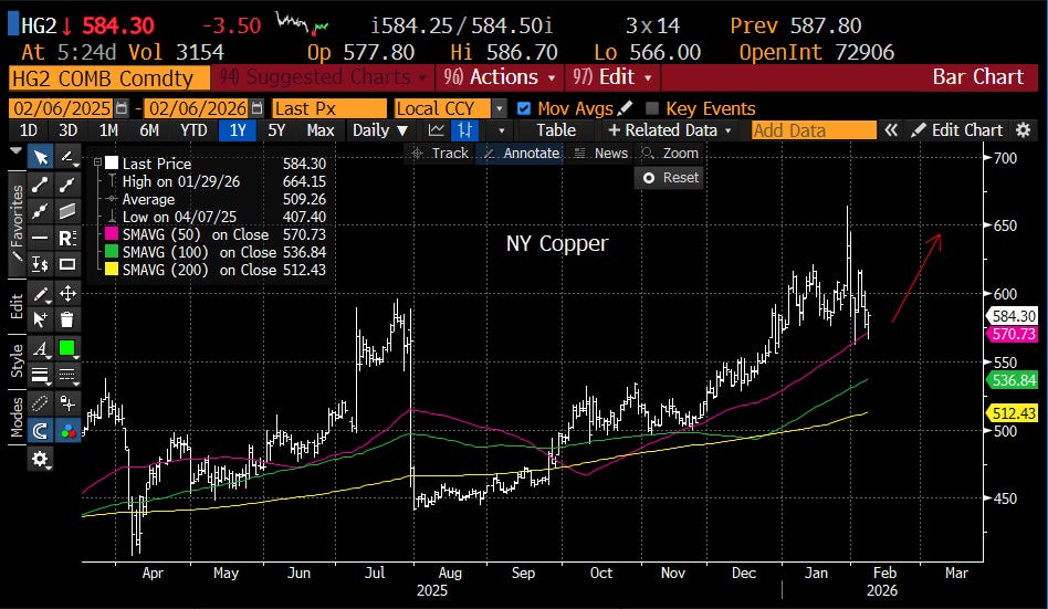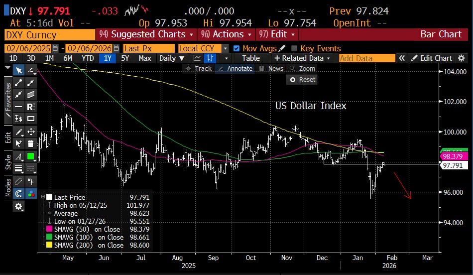 I updated the U.S. Dollar Index, U.S. 10yr yield, U.S. 10yr-2yr yield spread, WTI crude oil, NY copper, spot gold, spot silver, NYSE Arca Gold Miners Index, bitcoin, bitcoin weekly, Strategy, S&P futures, NASDAQ 99 futures and DOW futures charts below.